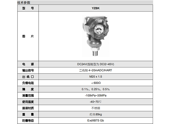 YZBK型壓力變送器